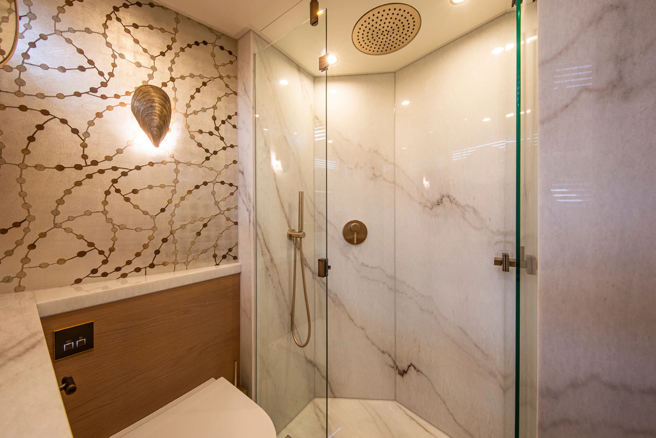 Creating luxury in a yacht requires more than beautiful materials. It demands a choreography of light, layout, and movement. Every inch has been carefully considered, every junction aligned. Lighting guides the eye and the body, flowing naturally from interior to exterior. The result is a harmonious whole: elegant, serene, and quietly confident. Not only did this yacht offer complete creative freedom, it was an opportunity to demonstrate how intimacy and impact are not a matter of scale, but of intention.