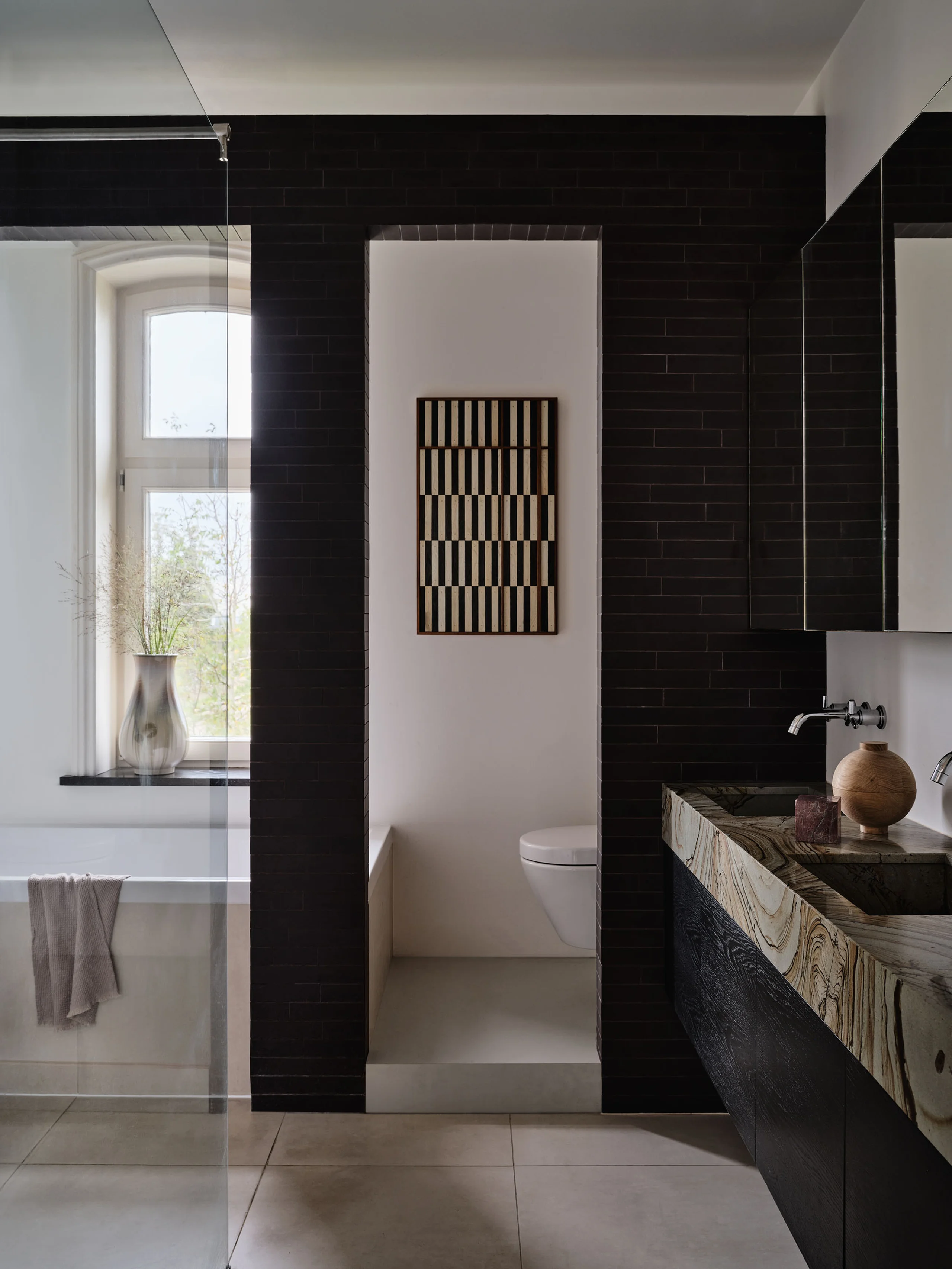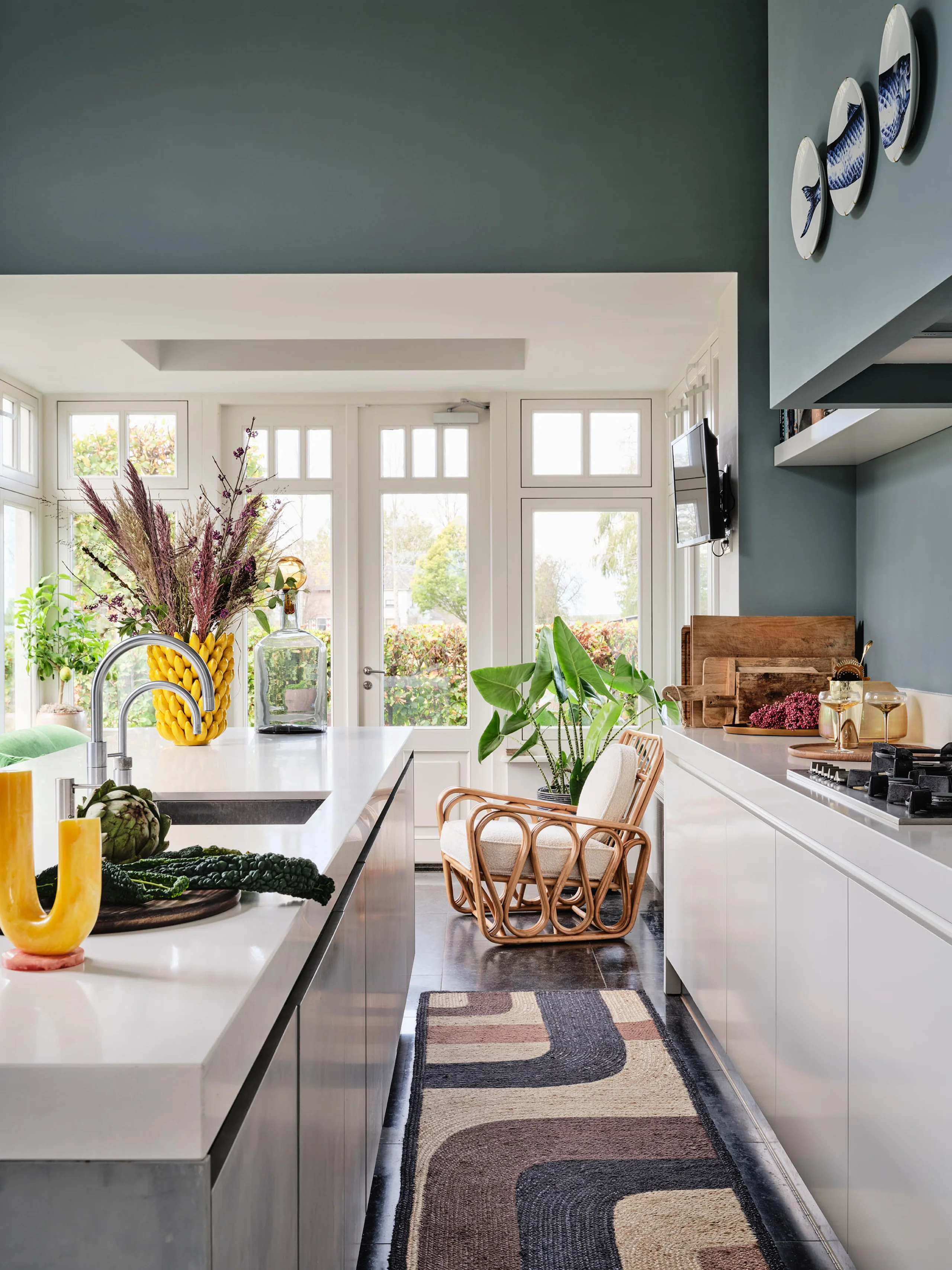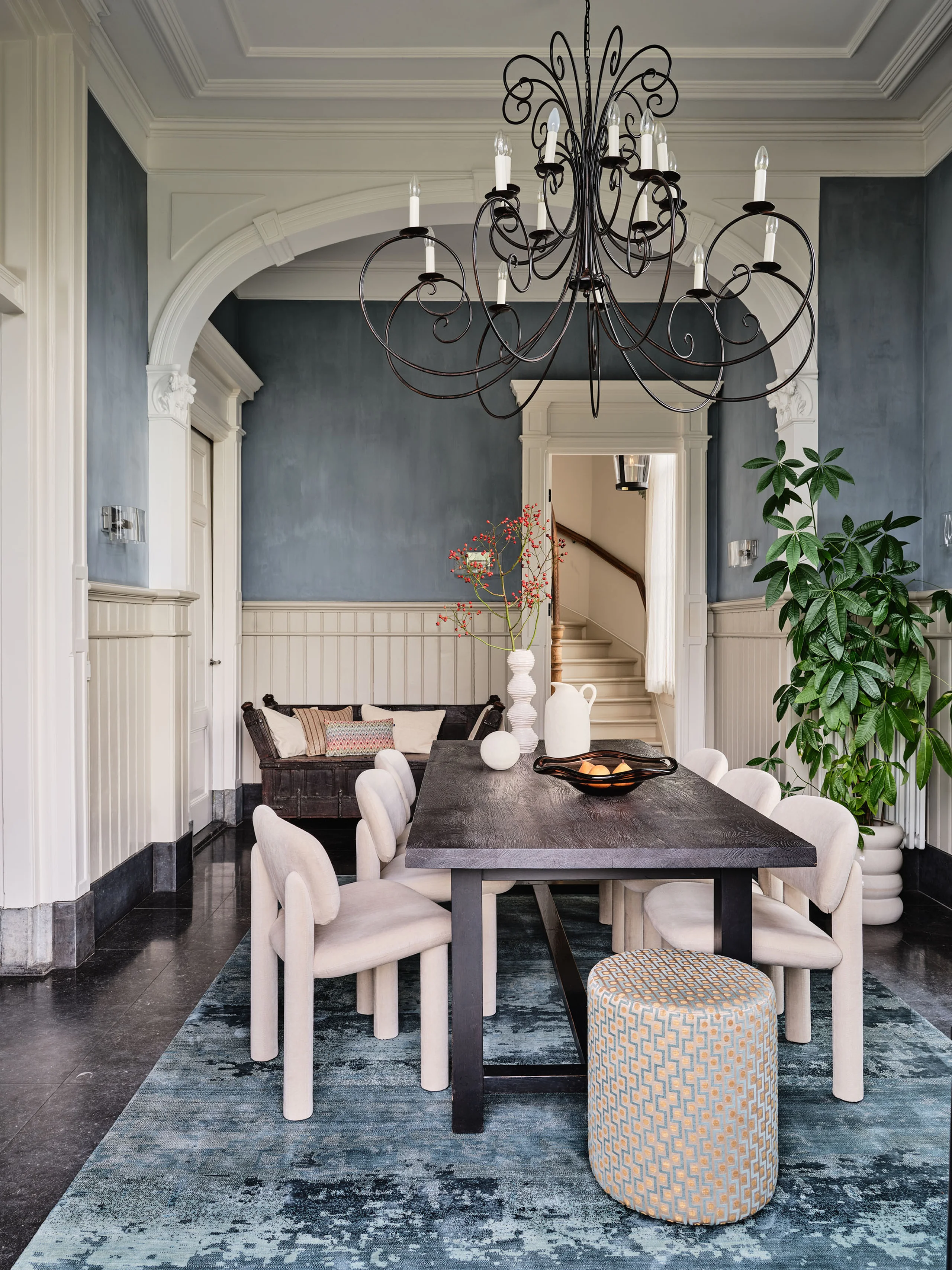 The original panelling still lines the walls, and the mouldings have been meticulously restored to their original detail. Whilst the history is tangible, it’s never overbearing. Belgian bluestone floor tiles add a tactile layer of old-world craftsmanship, while contemporary furniture brings colour and contrast into the conversation. Nothing is sanitised. Even the route from the station to the village’s castle still bears its historical name: the lane to Paris. It’s a fitting metaphor for the house itself, a place that recognises its origins while opening its doors to a new destination.
